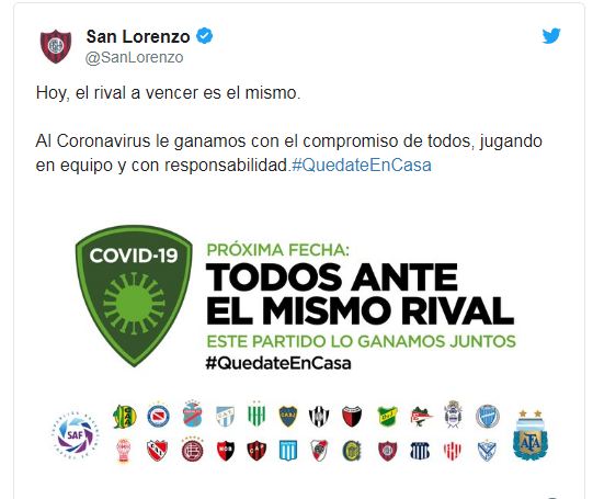 El fútbol argentino se une en la lucha contra el coronavirus