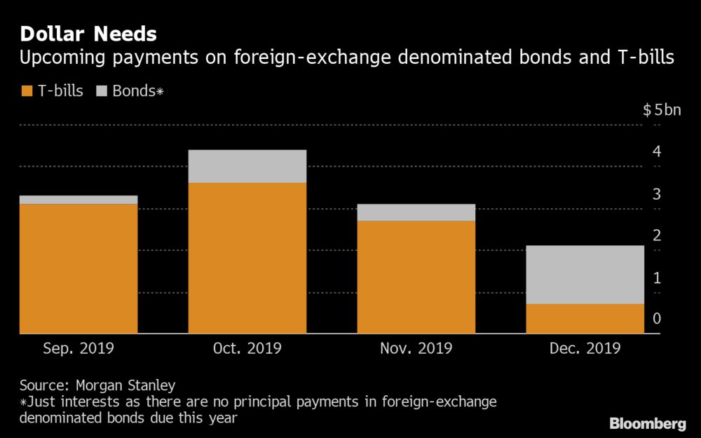 Morgan Stanley estima que la nación sudamericana necesita $ 12.9 mil millones para pagar los bonos y letras del Tesoro en los últimos cuatro meses del año. Se espera que las empresas estatales transfieran parte de esa deuda.