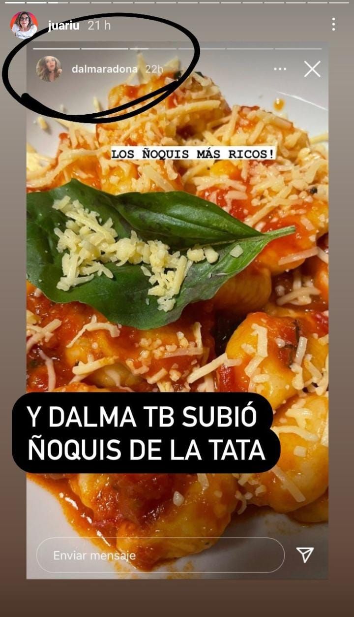 "¿Serán los ñoquis de La Tata?", se preguntó la panelista de Bendita TV quien también compartió otra imagen de Dalma Maradona de una imagen muy parecida del platillo en cuestión.