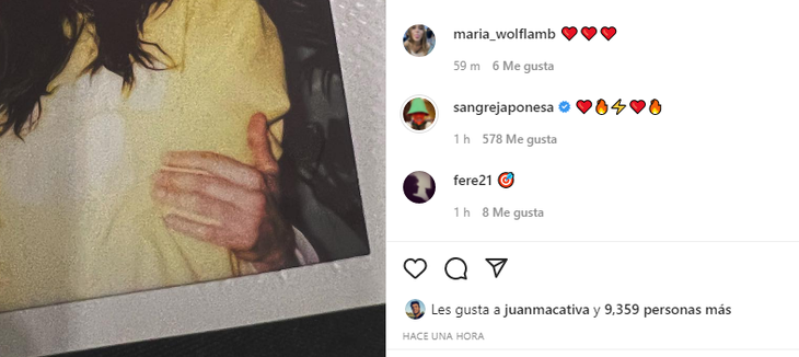La actriz viajó a Europa para encontrarse con el empresario y desde allí subió una foto abrazada junto a él. La misma imagen fue publicada por el joven, pero en el feed. Además la acompañó con corazones y el emoji de fuego. Ella, por su parte, le comentó con el mismo gesto.