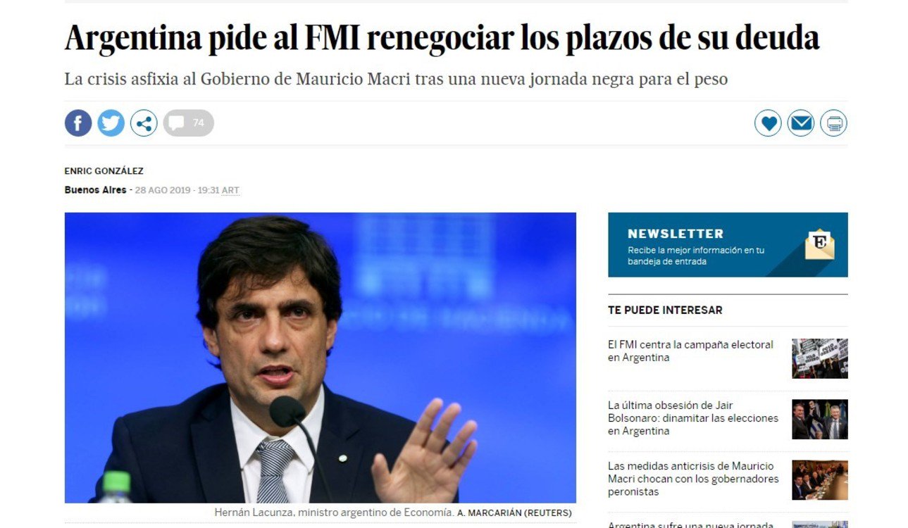 "El gobierno apunta a aclarar las perspectivas del programa financiero en el horizonte a corto, mediano y largo plazo", dijo Lacunza. "Esto se debe a tensiones de liquidez a corto plazo y no a problemas con la solvencia de la deuda".