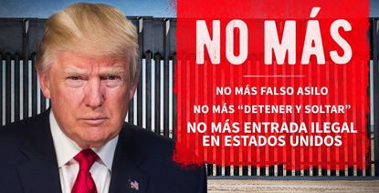 El mensaje está integrado por una fotografía de su rostro con el muro en la frontera sur de fondo, y palabras en español, sobre un recuadro rojo. Se puede leer que arriba dice "No Más" en mayúscula. Y debajo escribió: "No más falso asilo. No más 'detener y soltar'. No más entrada ilegal en Estados Unidos".