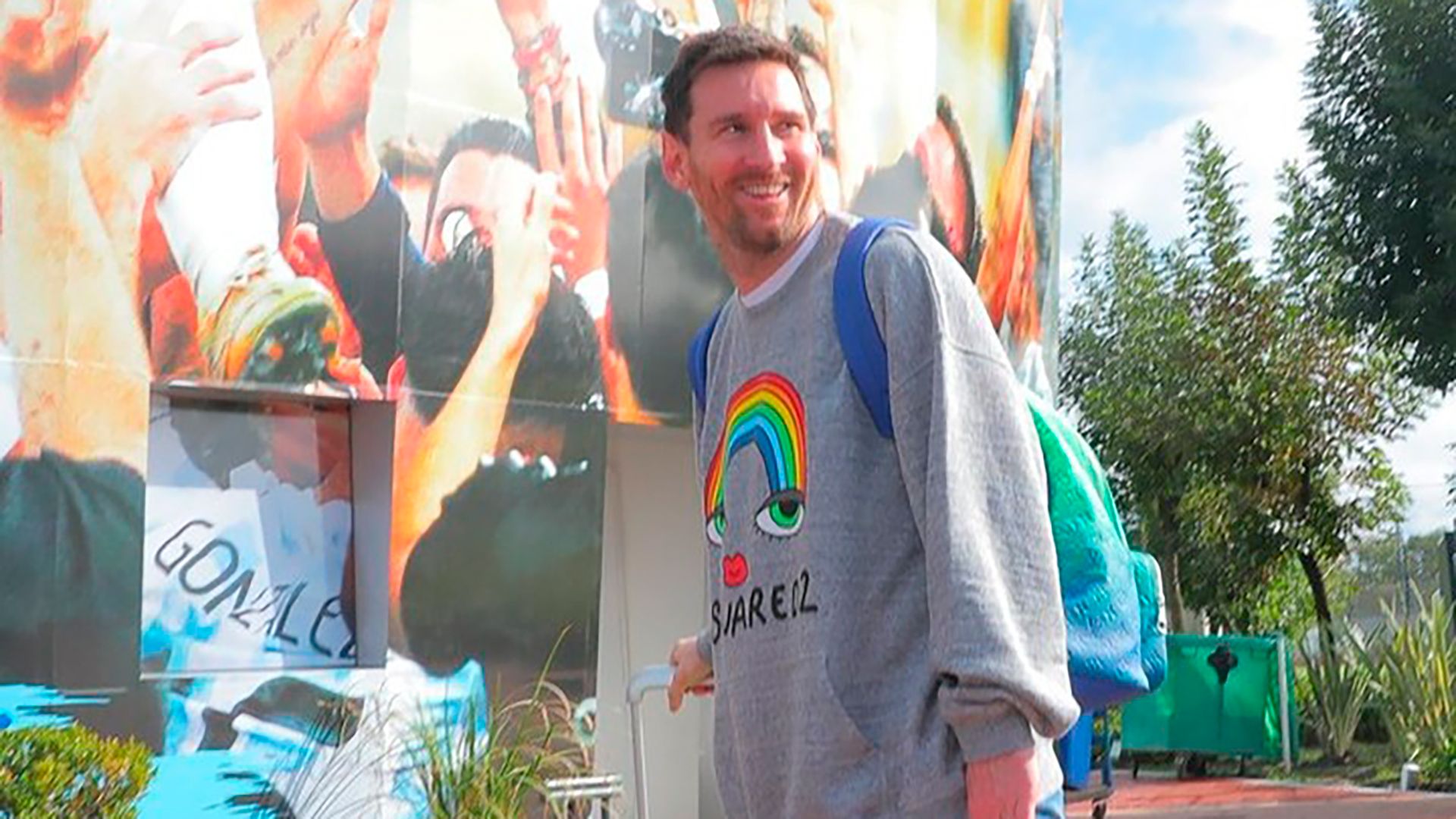 Ahora, causó sensación con un buzo que simplemente lleva un arco iris. Y todo con una sola foto. Messi y sus compañeros del PSG volaron desde París en el avión privado de la Pulga y se suman al plantel para el segundo día de entrenamientos, antes de los partidos con Venezuela (en la Bombonera) y con Ecuador (en Guayaquil).