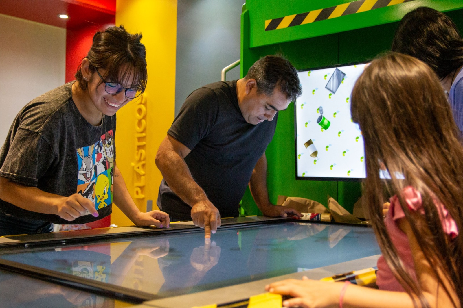 Luego, en el interior de Winti, hay una sala de reciclaje, que tiene como mensaje fundamental que la gente aprenda a diferenciar, que no todo lo que uno desecha es basura realmente, un gran porcentaje de esa basura son materiales que se pueden reutilizar. “Vamos a aprender sobre la clasificación de esos materiales, sobre la importancia de poder generar esa conciencia y trasladarnos a una economía más circular, y no a una economía lineal en la cual solamente consumimos y desechamos. Y también la importancia de las tres R, sobre todo la de reducir y consumir con conciencia” declaró la coordinadora y añadió: “Todo esto también se sintetiza luego en un juego dinámico en el cual las personas deben separar aquellos residuos que en la casa no lo han separado. Entonces juegan ahí de una manera dinámica y generan puntos; siempre se crea una dinámica de diversión y si hay dos o, por lo menos, cuatro personas pueden competir entre ellas”.
