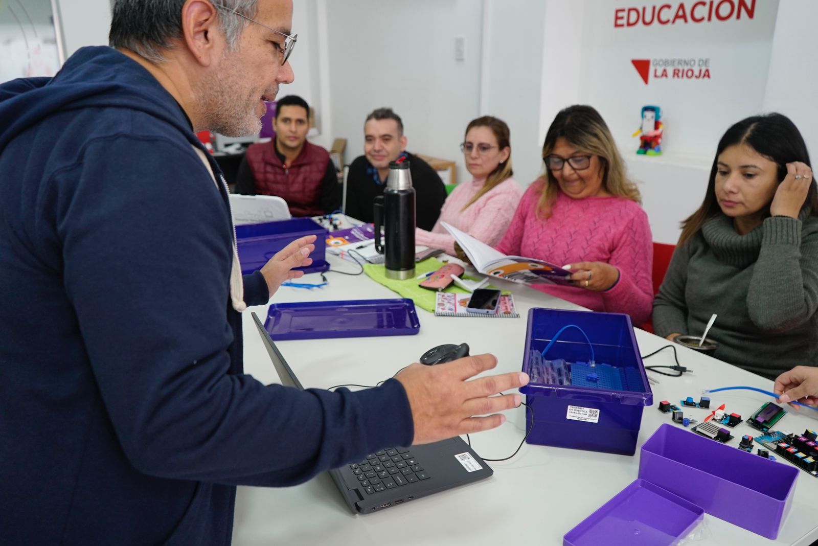 En tanto, destacó que “La Rioja es la primera provincia en mutar en el uso y aplicación de tecnología simple para su uso en el aula. El ministro Ariel Martínez visitó el encuentro de formación para ver cómo se avanza en este programa en donde los docentes hacen sus proyectos y pueden conectar con el kit sin saber nada de tecnología”.