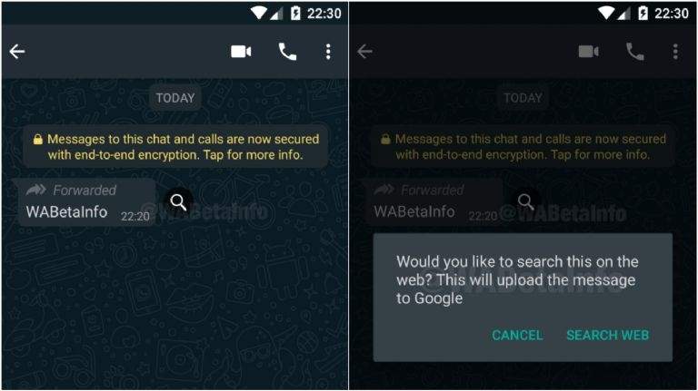 De esta manera las personas que reciban un mensaje que ha sido reenviado por otro usuario y que dude de su veracidad podrán comprobar si son ciertos ya que al lado del mismo habrá una lupa y si se le hace clic le consultará si quiere buscar el mensaje en la web para ver si es cierto o no.